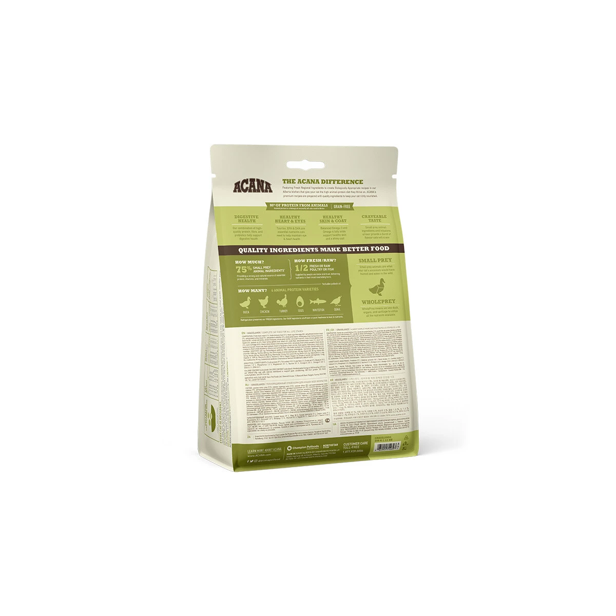 Unser hochwertiges ACANA wird aus Kanadas besten und frischesten Zutaten in unserer familieneigenen, prämierten Produktionsstätte im sonnigen Alberta hergestellt.Schauen Sie sich unsere Zutatenliste ruhig ganz genau an. Sie weren feststellen: ACANA GRASSLANDS (CAT) ist ein natürliches und schmackhaftes Futter zur Steigerung von Gesundheit, Lebensfreude und Vitalität Ihrer Katze.