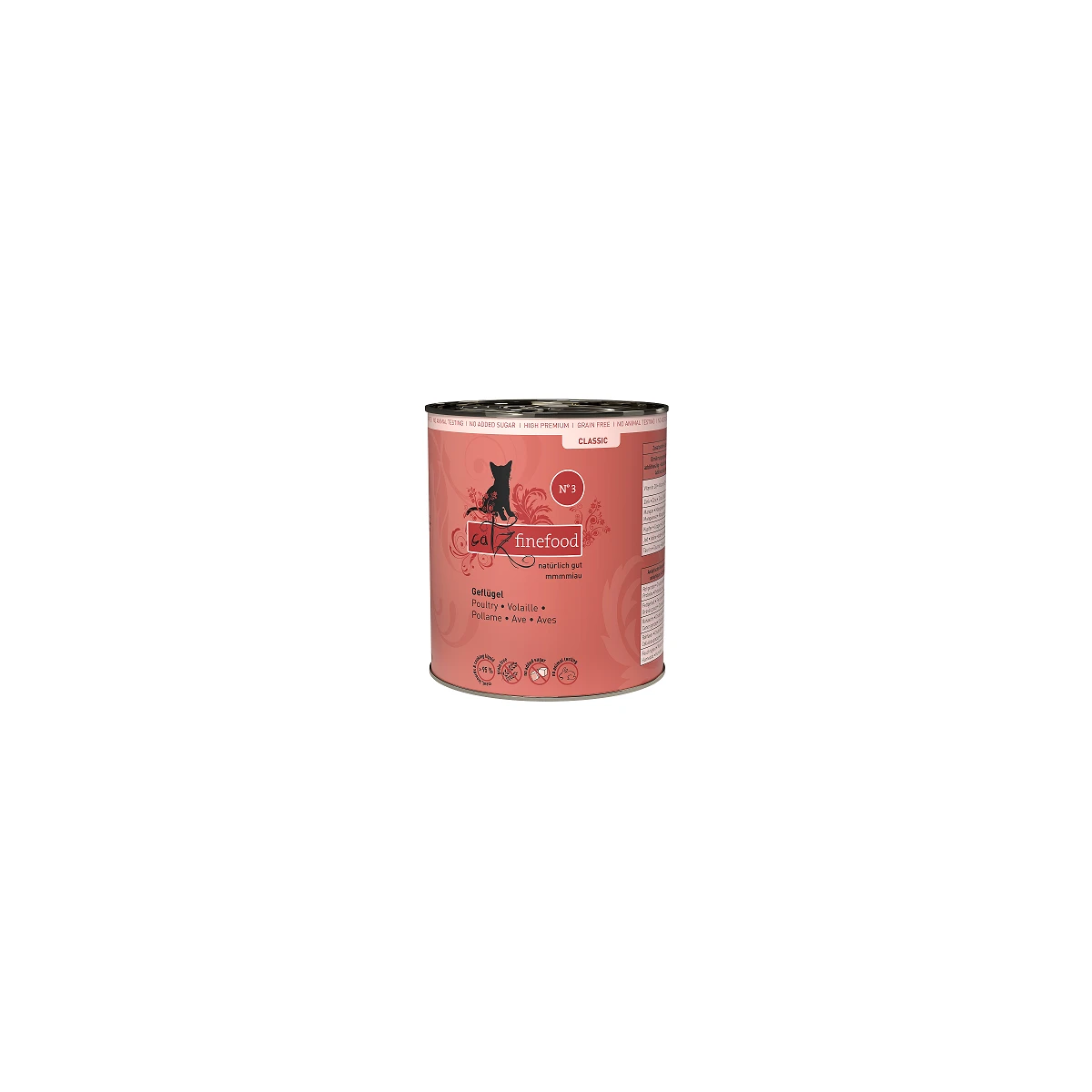 Feinkost für Katzen zur artgerechten Ernährung unserer Samtpfoten. Catz finefood No.3 enthält viel delikates Geflügel und gesunde Zutaten wie Preiselbeeren und Löwenzahn. Garantiert ohne Konservierungsstoffe, ohne Geschmacksverstärker und ohne Farbstoffe. Gentechnikfrei. Mmmmiau!