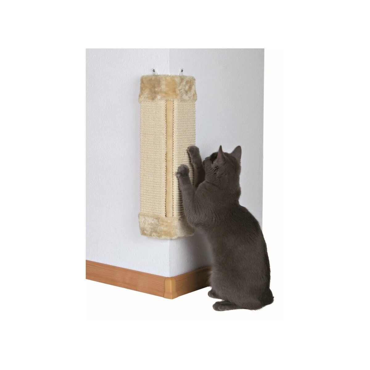 Das Wetzen der Krallen ist für Katzen äußerst wichtig. Um zu vermeiden, dass Ihre Katze zu diesem Zweck Tapeten oder Möbel zerkratzt ist es unumgänglich, ihr entsprechendes Kratzmaterial zur Verfügung zu stellen. Sisal ist eine natürliche, sehr robuste Faser, welche der Katze hilft, die schuppige Oberschicht der Kralle zu entfernen. So wird ein Einwachsen der Katzenkrallen verhindert. Dieses Brett eignet sich besonders gut für Zimmerecken, da es aus zwei Kratzbrettern besteht, die in der Mitte verbunden sind. So stehen der Katze zwei Kratzflächen zur Verfügung.