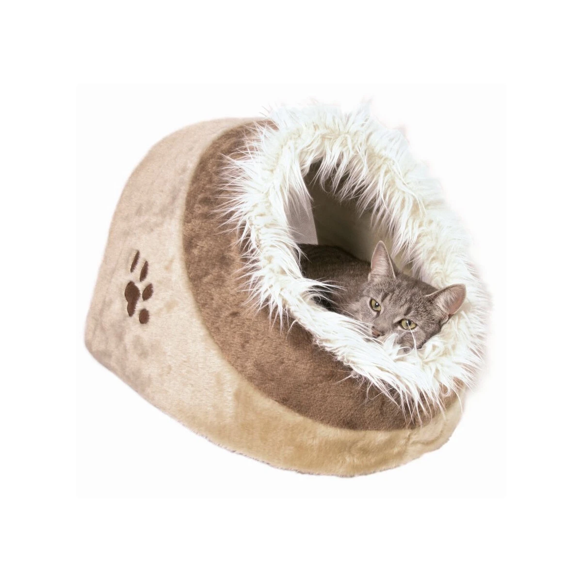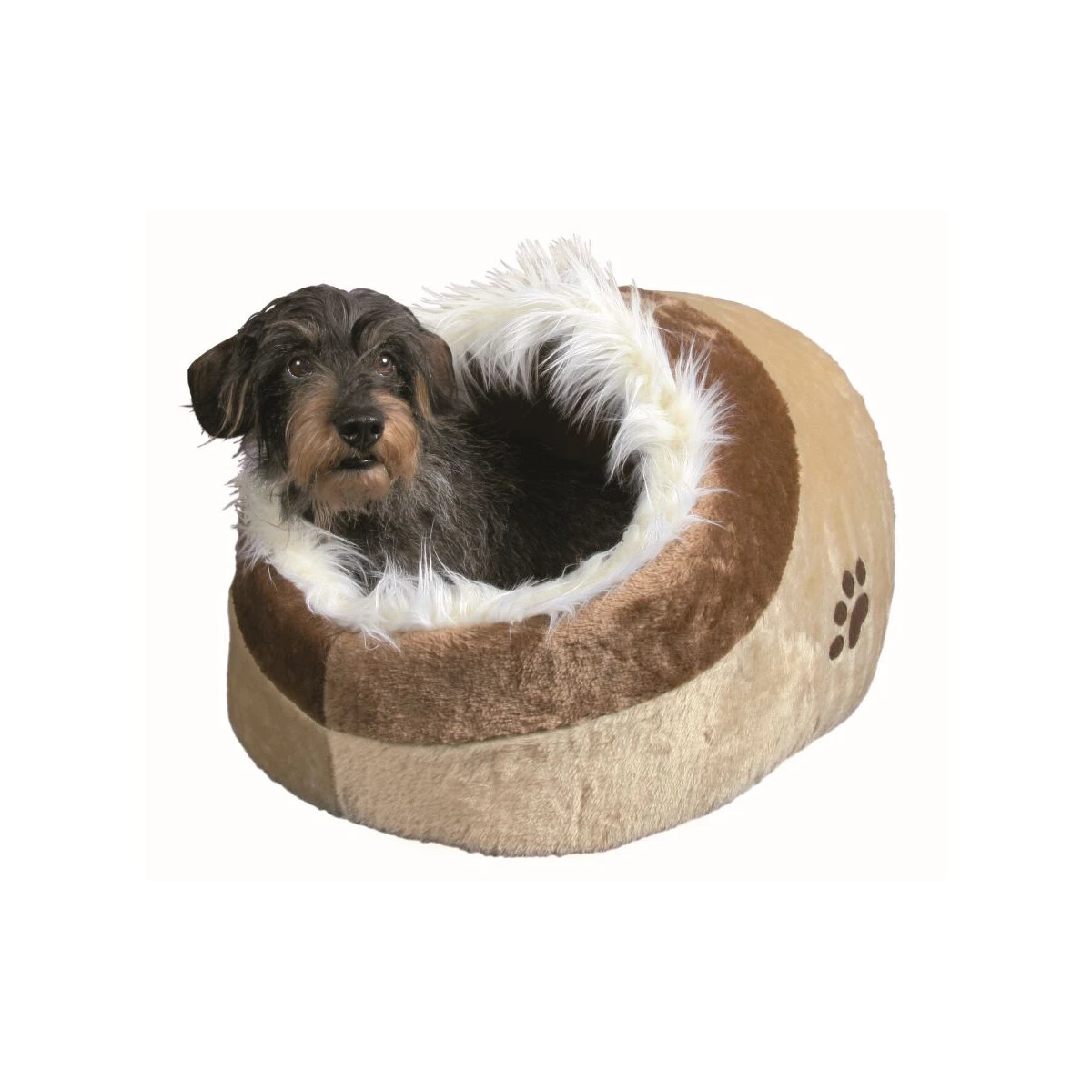 Diese Kuschelhöhle eignet sich für kleine Hunde und Katzen. Der Bezug ist aus Plüsch und die Höhle hat einen pflegeleichten Nylon-Boden. Das innenliegende Wendekissen ist herausnehmbar.