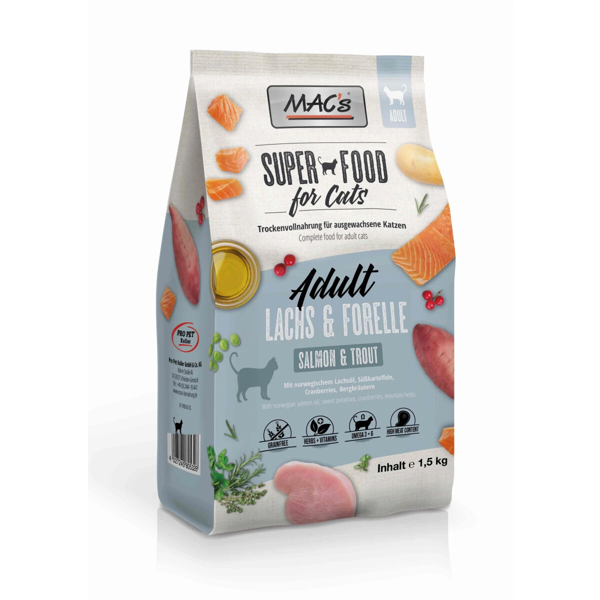 MAC’s Adult Lachs & Forelle bietet Ihrer Katze eine leckere Fischkomposition. Lachs, Forelle und norwegisches Lachsöl sind reich an Omega-Fettsäuren und sorgen für eine gesunde Haut und ein glänzendes Fell. Cranberries sind natürliche Säurebildner und können bakteriellen Blaseninfektionen vorbeugen. Bitte stellen Sie Ihrer Katze jederzeit ausreichend frisches Trinkwasser zur Verfügung. Produkt trocken bei Raumtemperatur lagern.