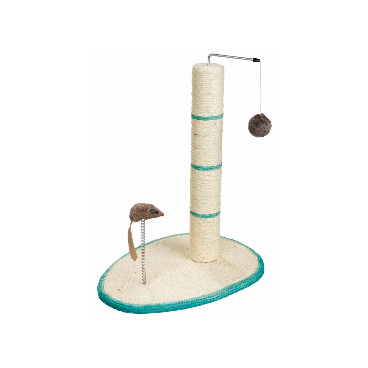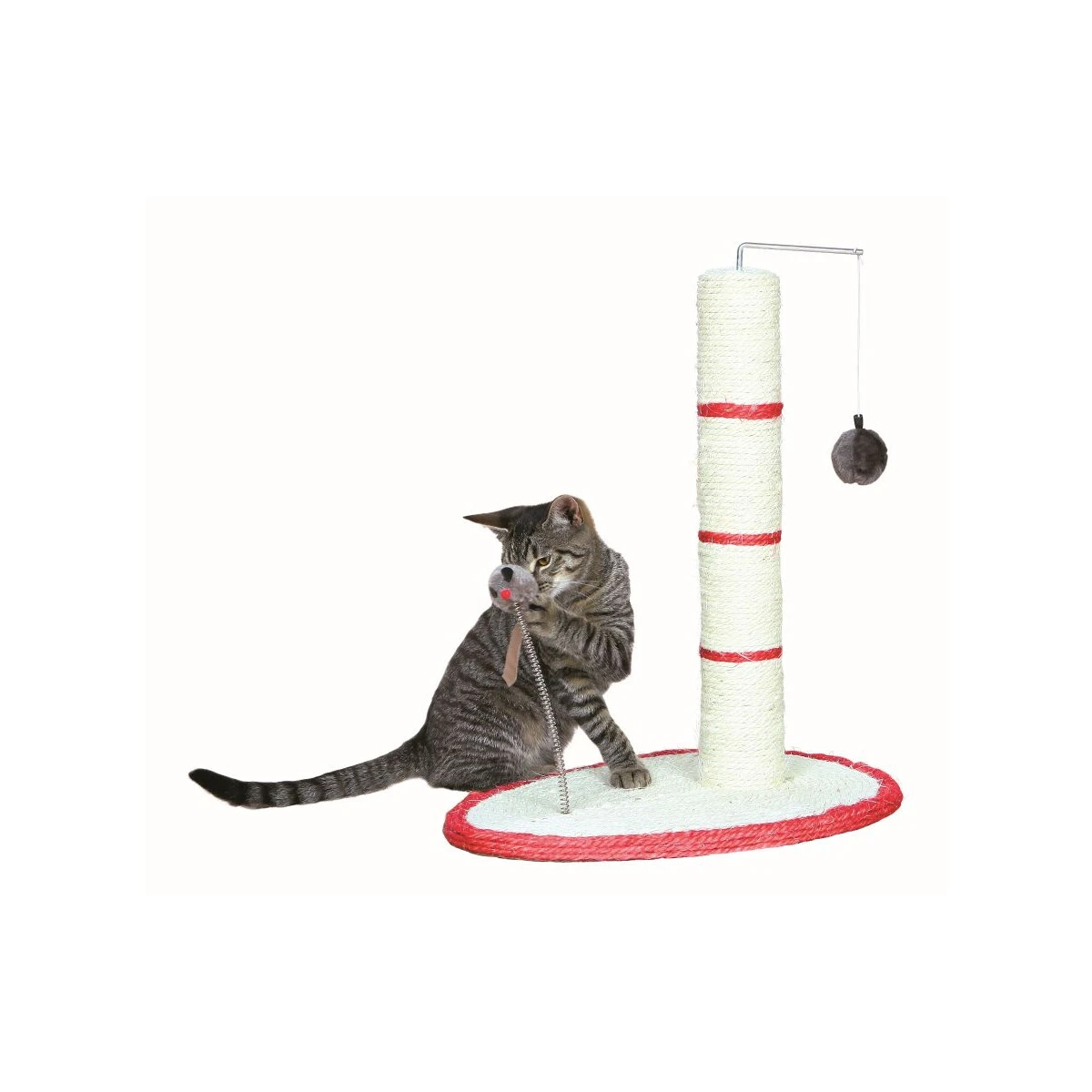 Dieses Spielzeug gibt der Katze die Möglichkeit mit dem Ball an einem Band oder einer Maus auf einer Feder zu spielen. Nebenbei wetzt die Katze ihre Krallen an dem Kratzstamm oder der Sisal-Bodenplatte ab. Mit Catnip!!